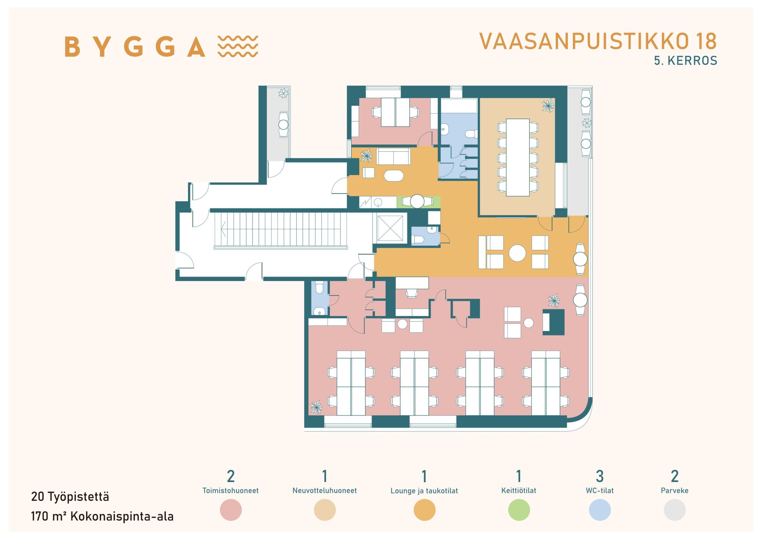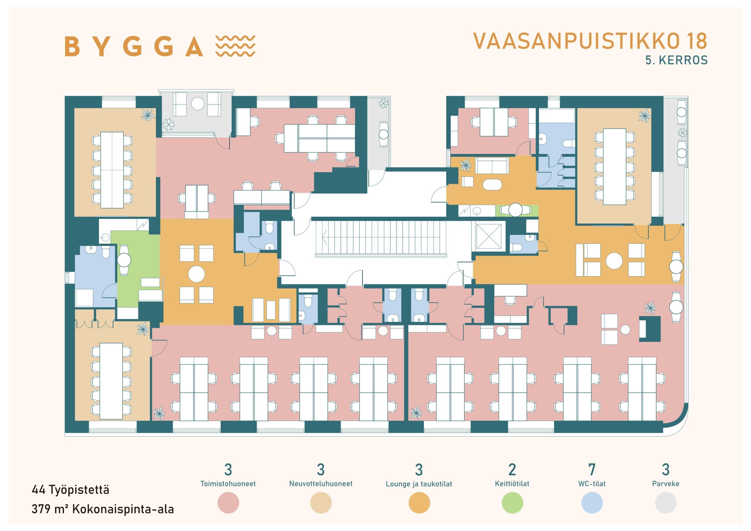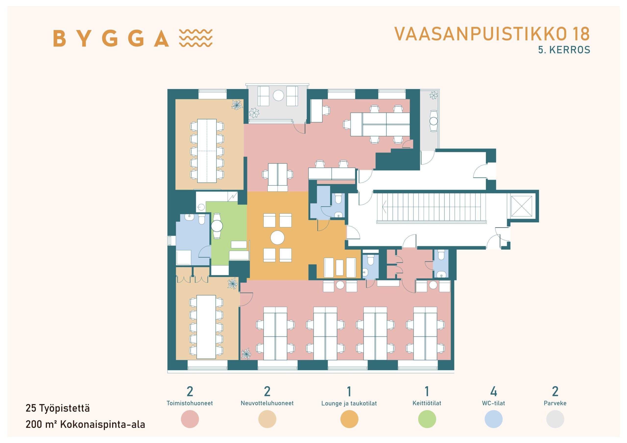 Bygga sijaitsee Vaasan sydämessä, keskeisellä paikalla Kauppatorin kupeessa. Tyylikkäät ja persoonalliset toimistotilat odottavat juuri sinua.